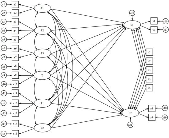 Specifically, we defined exogenous latent variables at the family level, the teacher level, and the peer level. The endogenous latent variable was the development of self-social behavior. Before constructing the structural equation model, a validation factor analysis was conducted on the latent variables to validate the measurement model, excluding observed variables with factor loadings less than 0.55. Then, path diagrams were constructed by including all latent and control variables following the research needs and relevant hypotheses. After estimating the parameters (maximum likelihood estimate, MLE), direct effects on the development of self-social behavior at the family, teacher, and peer levels and the degree of influence between the variables were derived. Finally, the structural equations were corrected (MI ≥ 3.841) and tested for overall goodness-of-fit. The goodness-of-fit was verified using the chi-square test (χ2), root mean square error of approximation (RMSEA), and comparative fit index (CFI).
