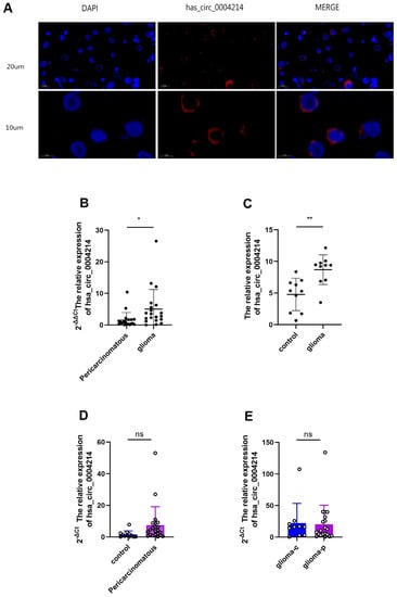 3.2. High hsa_circ_0004214 Expression in Human Glioma Tissue