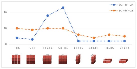 With the input shape in the T × C structure, which achieved the best accuracy for the BCI-IV-2A dataset, an average accuracy rate of 89.293% and a standard deviation of 5.471 were obtained. With the input shape in the T × C structure, which achieved the best accuracy for the BCI-IV-2B dataset, an average accuracy rate of 84.943% and a standard deviation of 8.607 were obtained. These values obtained with the developed models reveal the high classification success and robustness of the models.