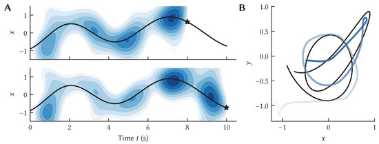 There are special cases under which Equation (3) can be simplified even further. For example, if all are first-order exponential low-pass filters, then we can solve for weights that realise dynamical systems without the need to sample activities through time—we just need to compensate for the synaptic low-pass filter not being a perfect integrator [1,30].
