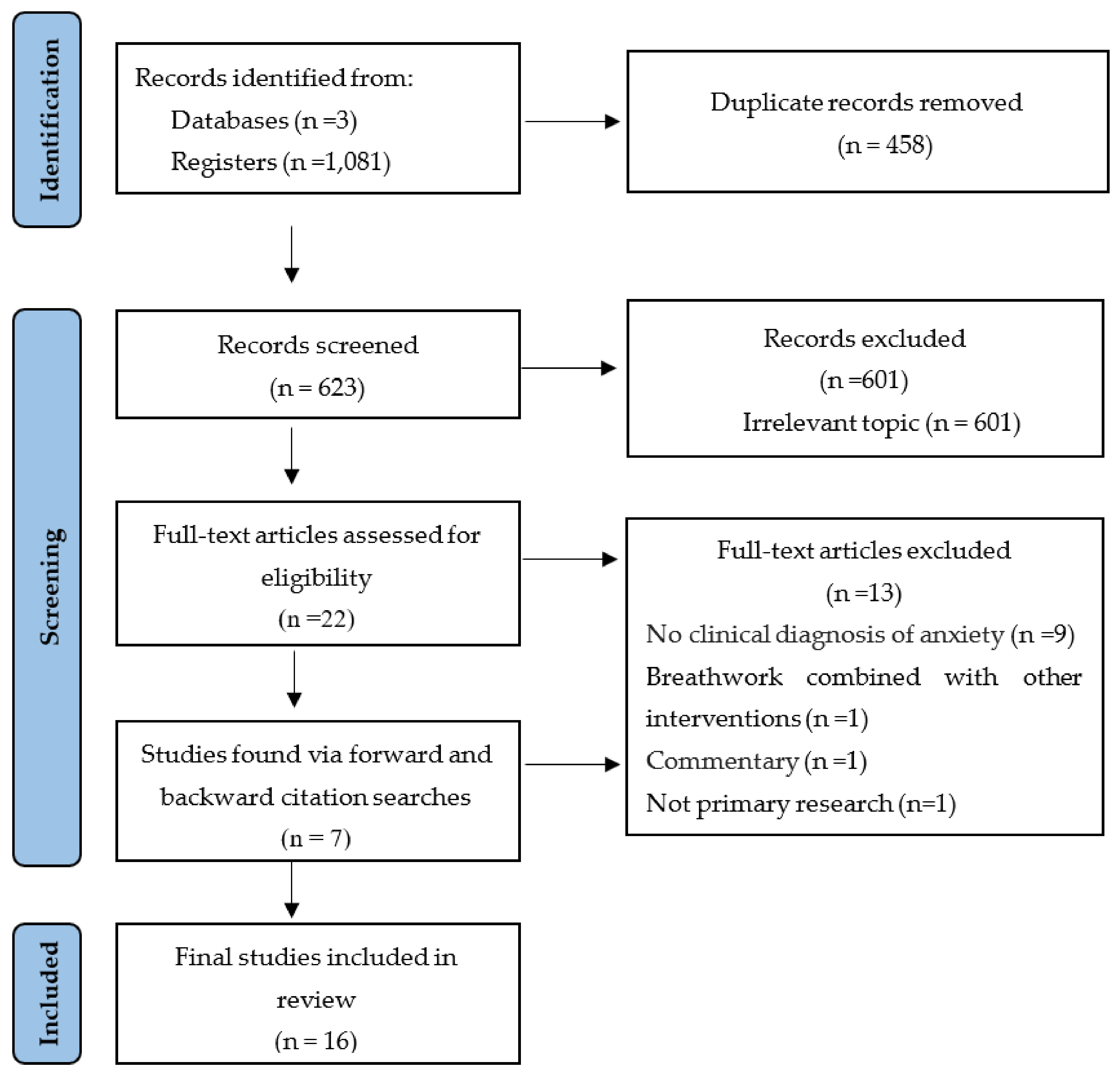APA StyleBanushi, B., Brendle, M., Ragnhildstveit, A., Murphy, T., Moore, C., Egberts, J., & Robison, R. (2023). Breathwork Interventions for Adults with Clinically Diagnosed Anxiety Disorders: A Scoping Review. Brain Sciences, 13(2), 256. https://doi.org/10.3390/brainsci13020256