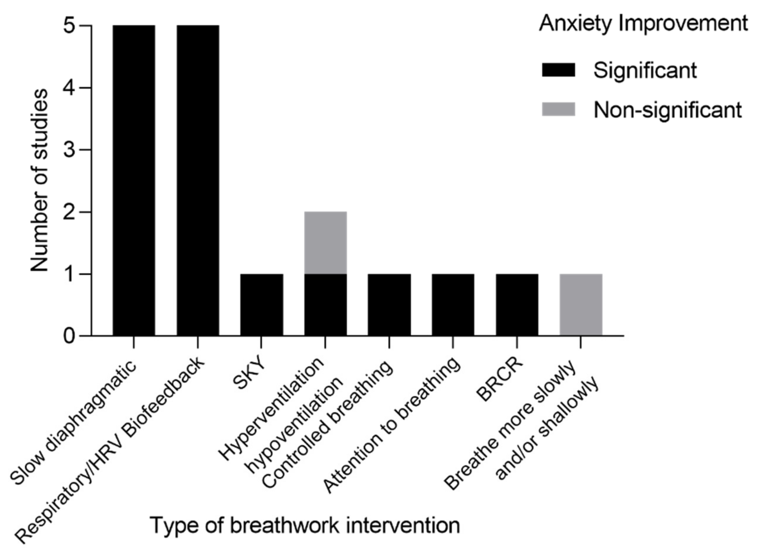- Leyro, T.M.; Versella, M.V.; Yang, M.-J.; Brinkman, H.R.; Hoyt, D.L.; Lehrer, P. Respiratory therapy for the treatment of anxiety: Meta-analytic review and regression. Clin. Psychol. Rev. 2021, 84, 101980. [Google Scholar] [CrossRef]