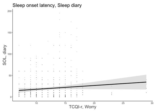 Finally, in line with previous evidence [8,54,55], poor self-reported sleep quality (i.e., higher PSQI scores) significantly predicted all of the subjective sleep parameters considered here (i.e., shorter TST, longer SOL, and lower SE), whereas it was only associated with longer objective SOL. This latter result suggests that overall self-reported sleeping quality also affects the objective time needed to fall asleep [8].