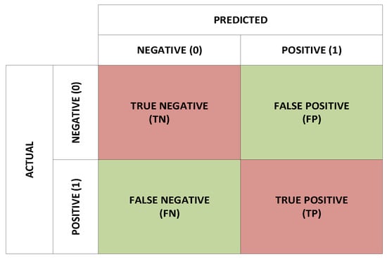 The average values of vital performance parameters other than accuracy, such as sensitivity, specificity, precision, F1-score, AUC, and the negative predictive value (NPV), were calculated to assess the best-performing VMD-SVM method further. The general structure of the confusion matrix is shown in Figure 14. The performance evaluation parameters are computed from the confusion matrix using the following formulae: