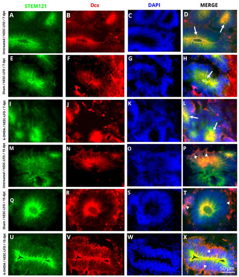 - Brown, J.P.; Couillard-Després, S.; Cooper-Kuhn, C.M.; Winkler, J.; Aigner, L.; Kuhn, H.G. Transient Expression of Doublecortin during Adult Neurogenesis. J. Comp. Neurol. 2003, 467, 1–10. [Google Scholar] [CrossRef]