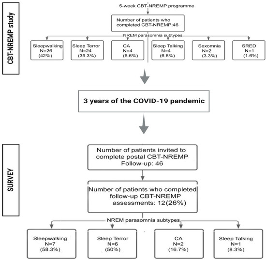 Laroche, M.; Biabani, N.; Drakatos, P.; Selsick, H.; Leschziner, G.; Steier, J.; Young, A.H.; Eriksson, S.; Nesbitt, A.; Kumari, V.; et al. Group Cognitive Behavioural Therapy for Non-Rapid Eye Movement Parasomnias: Long-Term Outcomes and Impact of COVID-19 Lockdown. Brain Sci. 2023, 13, 347. https://doi.org/10.3390/brainsci13020347