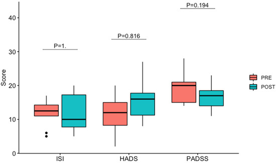 | HADS.Pre | HADS.Post | 3 (−2, 6.25) | 11 | 0.816 |