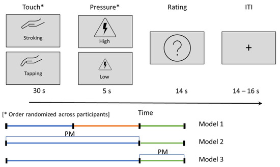 - Gursul, D.; Goksan, S.; Hartley, C.; Mellado, G.S.; Moultrie, F.; Hoskin, A.; Adams, E.; Hathway, G.; Walker, S.; McGlone, F.; et al. Stroking modulates noxious-evoked brain activity in human infants. Curr. Biol. 2018, 28, R1380–R1381. [Google Scholar] [CrossRef]