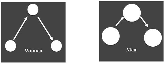 The shorter fixations and larger saccades, as activated by autobiographical retrieval in women compared to men, demonstrated that women tend to generate a larger gaze scan compared to men, who tend to fixate more, when retrieving autobiographical memories. The large gaze in women may mirror an exploratory gaze strategy involving the creation of larger visual scenes compared to men, who generate narrower visual scenes but with longer fixations. The large gaze in women, as observed in the current study, aligns with research demonstrating that women show high explorative gaze behavior, expressed by large saccades, when exploring scenes [25,26,28,29]. In a similar vein, Mercer Moss, Baddeley [36] demonstrated that the fixation distributions of women are larger than those of men when exploring pictures of art pieces and social interactions. Further, the explorative gaze in women as observed in our study aligns with hypothesis of selective information processing [37,38]. This hypothesis proposes that, compared to women, men are more selective processors as they consider only a subset of the available information when visually processing an environment. Taken together, the larger saccades during autobiographical retrieval may mirror the exploratory gaze behavior in women.