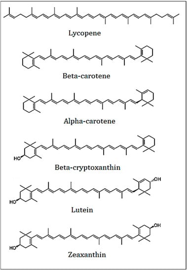 - Przybylska, S. Lycopene—A Bioactive Carotenoid Offering Multiple Health Benefits: A Review. Int. J. Food Sci. Technol. 2020, 55, 11–32. [Google Scholar] [CrossRef]
