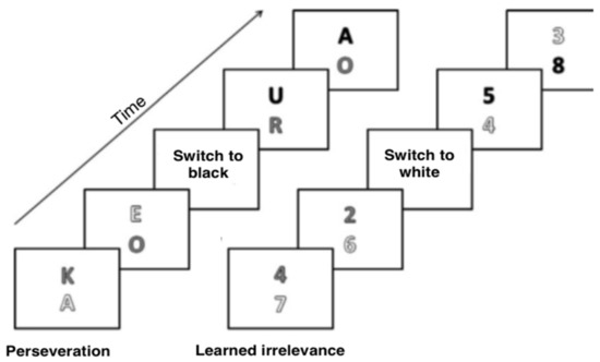 - Maes, J.H.R.; Vich, J.; Eling, P.a.T.M. Learned Irrelevance and Response Perseveration in a Total Change Dimensional Shift Task. Brain Cogn. 2006, 62, 74–79. [Google Scholar] [CrossRef] [PubMed]