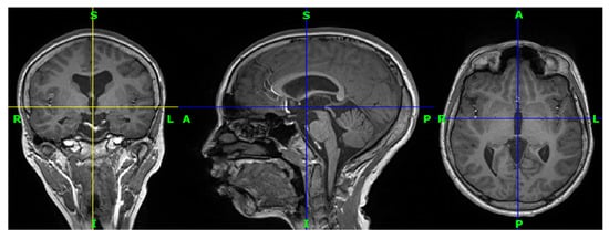 Eleven participants with drug-resistant epilepsy from the epilepsy unit at King Abdul-Aziz University Hospital were included in this study. In addition, eighteen healthy control subjects from the same hospital were included. The subjects are between 22 and 30 years old. Most of them are Saudi. A total of twenty-nine three-dimensional (3D) T1-weighted MRI images were provided, one for each subject. All images are in nifti format (.nii). Figure 5 shows an image from the collected data for the first patient.