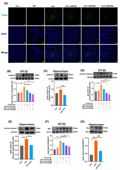 3.4. Minocycline Suppresses Hippocampal Apoptosis Induced by Sevoflurane
