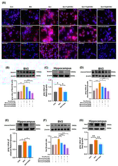 3.6. Minocycline Alleviates Sevoflurane-Induced Neuroinflammation via Notch Signaling Suppression