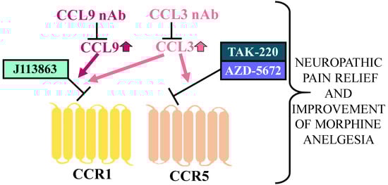 Pharmacological modulation of chemokines from MIP-1 family (CCL3 and CCL9) via neutralizing antibodies and their receptors (CCR1 by J113863, CCR5 by TAK-220 or AZD -5672) reduces neuropathic pain symptoms and influences morphine analgesia—evidence from mice model evoked by chronic constriction injury of the sciatic nerve.