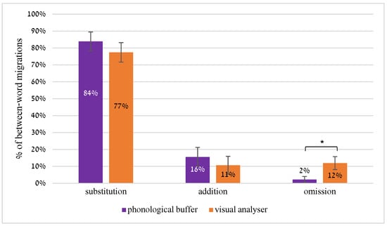 - The type of between-word errors: do they involve substitutions of a letter/phoneme in the target word, additions, or omissions of the other instance of this letter/phoneme in the target word?