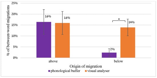 This supports the conclusion that the between-word migrations in the two groups have different sources, either the phonological output or the orthographic input.