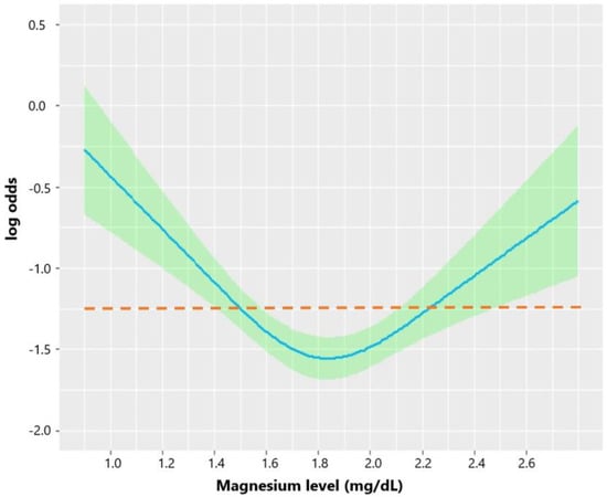 Association between magnesium level and the development of AKI analyzed by RCS.