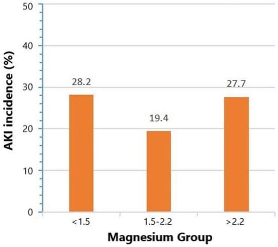 - Koh, H.B.; Jung, C.-Y.; Kim, H.W.; Kwon, J.Y.; Kim, N.H.; Kim, H.J.; Jhee, J.H.; Han, S.H.; Yoo, T.-H.; Kang, S.-W.; et al. Preoperative Ionized Magnesium Levels and Risk of Acute Kidney Injury After Cardiac Surgery. Am. J. KidneyDis. Off. J. Natl. Kidney Found. 2022, 80, 629–637.e1. [Google Scholar] [CrossRef]