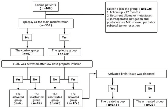 Furthermore, in the activated group, 148 patients experienced surgical treatment on the activated brain tissue, according to the ECoG monitoring during surgery, and were included in the treated group. The other 29 patients included in the untreated group did not experience surgical treatment on the activated brain tissue because the locations were in functional areas or in proximity to blood vessels. All the patients in the control group did not experience surgical treatment on activated brain tissue because the patients had no epileptic seizures before surgery. For patients in the treated group, cortical resection and/or thermos-coagulation were performed on the activated brain tissue until visual IEDs disappeared after intravenous injection of low-dose propofol.