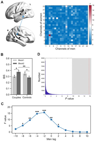 In addition, a time-lag analysis on IBS was performed since a previous hyperscanning study showed that IBS usually involved a time lag in couples [45]. In order to test the possible lead-lag pattern between men and women of couples, various time-lags were added when computing the IBS. Specifically, we shifted men’s time course forward or backward relative to those of women from 2 to 10 s (step = 2 s), with other computations similar to the latter part of the above paragraph.