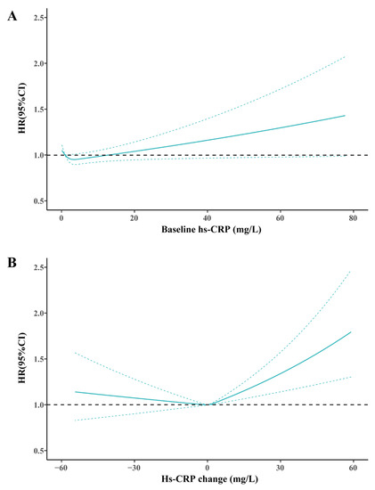 Wang, Y.; Fu, J.; Liang, F.; Oniffrey, T.M.; Ding, K.; Zeng, J.; Moore, J.B.; Luo, X.; Li, R. High-Sensitivity C-Reactive Protein, Its Change, and Cognitive Function: A National Population-Based Cohort Study. Brain Sci. 2023, 13, 658. https://doi.org/10.3390/brainsci13040658