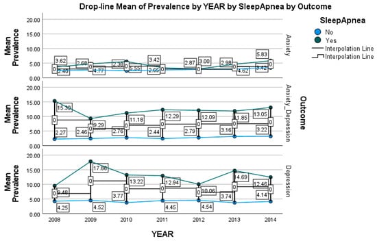 3.2. Prevalence of Anxiety Only, Depression Only, and Their Co-Occurrence by Year