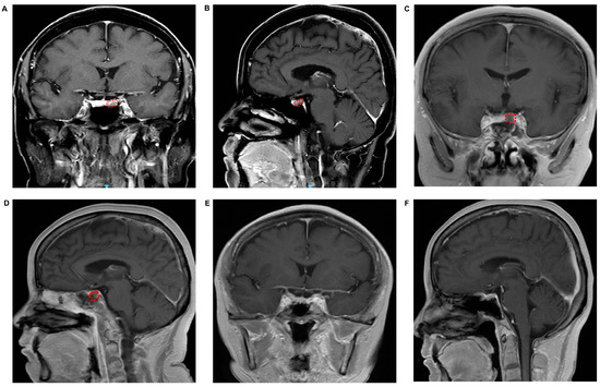Since the pseudocapsule of pituitary tumors was introduced in 1936, remarkable progress in learning about its occurrence, development, histopathology, morphology, and clinical significance has been made [28,29,30,31,32,33,34]. The pseudocapsule-based extracapsular resection technique has been valued clinically by neurosurgeons because the method helps to improve the tumor resection rate, lower the recurrence rate, and protect the pituitary function. The surgeon in the present report adopted a layered peel strategy rather than blind curettage or suction during the operation. A location closest to the tumor was also chosen during surgery in order to open the pituitary capsule, thus preventing excessive damage to the normal pituitary gland. As indicated in the surgery video and Figure 2, the core of the strategy involved opening the pituitary capsule, partially incising it, and bluntly separating the pituitary gland before touching the tumor. Thus, these procedures can help to easily identify a clear circumscription between the tumor and the pituitary gland and keep the pseudocapsule of pituitary tumors intact. Consequently, the residual tumor could be minimized, thus improving the total tumor resection rate. As expected, the circumscription between the pseudocapsule and normal pituitary gland was clearly identified in all cases, and no patients underwent a partial hypophysectomy adjacent to the tumor.