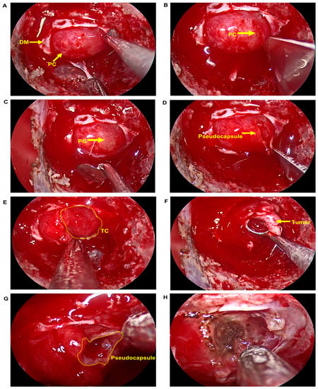 - Wang, X.B.; Han, T.Y.; Ma, J.G.; He, C.; Xue, L.; Zhang, X.; Wu, Z.B. Pseudocapsule and pseudocapsule-based extracapsular resection in pituitary neuroendocrine tumors. Front. Endocrinol. 2022, 13, 1056327. [Google Scholar] [CrossRef] [PubMed]