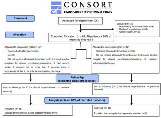 17. Schulz, K.F.; Altman, D.G.; Moher, D.; CONSORT Group. CONSORT 2010 statement: Updated guidelines for reporting parallel group randomised trials. Int. J. Surg. 2011, 9, 672–677. [Google Scholar] [CrossRef]