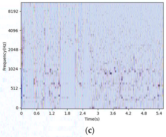 Components of 3D mel-spectrum. (a) shows the mel-spectrum, (b) shows the first-order difference feature, and (c) shows the second-order difference feature.