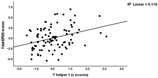Partial regression of the early EPDS (Edinburgh Postnatal Depression Scale) score on the T helper 1 profile.