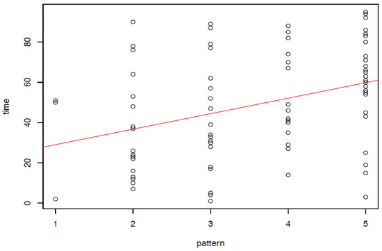 Figure 2 shows the dreams of Amalie X in sequence over the period of her therapy. Time equal 1 marks the first dream (6th session of therapy), the last dream number 96 (session 517). The descriptive scatter plot shows an overall association between the dream patterns and their occurrence in time, which was also found to be statistically significant (Kendall’s rank correlation, r = 0.25, p = 0.003). This is equivalent with a movement from pattern two to pattern five. If the dream series is divided into halves, with dream number 48 marking the middle point, it becomes obvious that the second half of therapy is characterized by a domination of pattern 5.