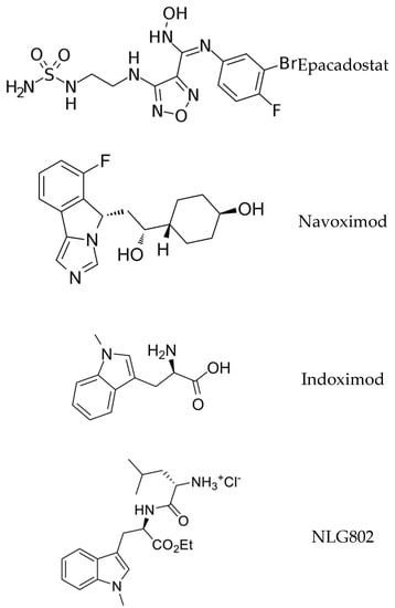 - Le Naour, J.; Galluzzi, L.; Zitvogel, L.; Kroemer, G.; Vacchelli, E. Trial watch: IDO inhibitors in cancer therapy. Oncoimmunology 2020, 9, 1777625. [Google Scholar] [CrossRef]