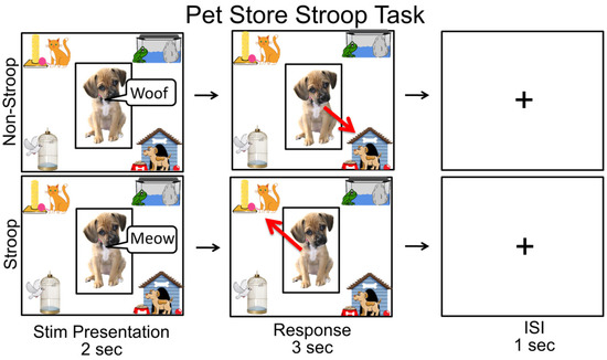 - Stroop, J.R. Studies of interference in serial verbal reactions. J. Exp. Psychol. 1935, 18, 643. [Google Scholar] [CrossRef]