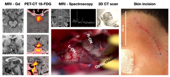 - Carmel, P.W.; Antunes, J.L.; Chang, C.H. Craniopharyngiomas in children. Neurosurgery 1982, 11, 382–389. [Google Scholar] [CrossRef]