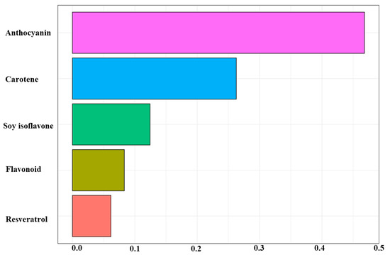 Among them, flavonoids included quercetin, myricetin, luteolin, kaempferol, and apigenin; soy isoflavones included daidzein, glycitein, and genistein, anthocyanins included delphinidin, cyamidin, and peonidin; and resveratrol included resveratrol and polydatin.
