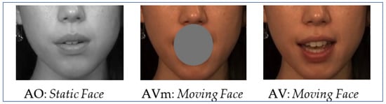 5]. In their study, the mouth area was obscured by an overlaid opaque circular patch (see Method below). The patch prevents participants from perceiving detailed information about speech segments, but still permits rhythmic articulatory movements to be perceived.