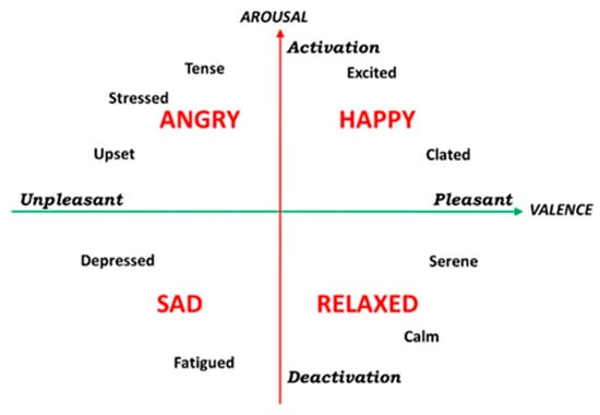 - Russell, J.A. A circumplex model of affect. J. Personal. Soc. Psychol. 1980, 39, 1161–1178. [Google Scholar] [CrossRef]