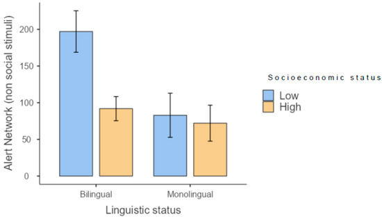 Federico, F.; Mellone, M.; Volpi, F.; Orsolini, M. Study of Alerting, Orienting, and Executive Control Attentional Networks in Bilingual and Monolingual Primary School Children: The Role of Socioeconomic Status. Brain Sci. 2023, 13, 948. https://doi.org/10.3390/brainsci13060948