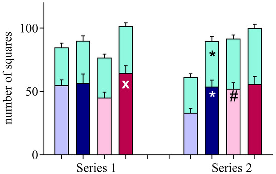 - Rodina, V.I.; Krupina, N.A.; Kryzhanovskii, G.N.; Oknina, N.B. A new method of evaluating anxiety states and phobias in rats. Bull. Exp. Biol. Med. 1992, 114, 916–920. [Google Scholar] [CrossRef]