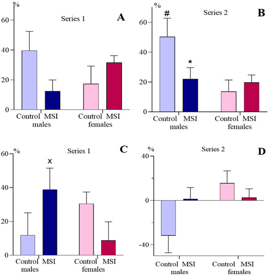 - González-Pardo, H.; Arias, J.L.; Gómez-Lázaro, E.; Taboada, I.L.; Conejo, N.M. Sex-Specific Effects of Early Life Stress on Brain Mitochondrial Function, Monoamine Levels and Neuroinflammation. Brain Sci. 2020, 10, 447. [Google Scholar] [CrossRef]
