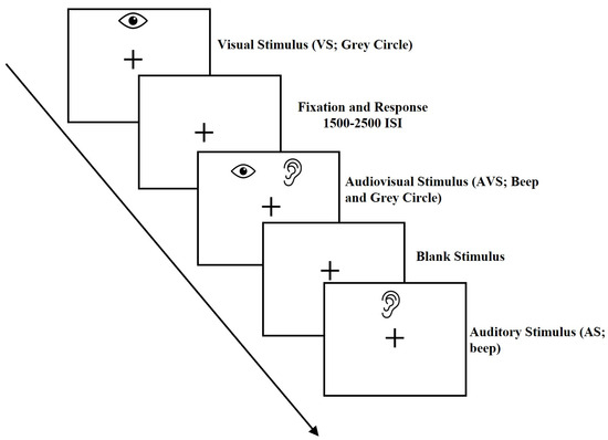 - Barutchu, A.; Spence, C. Top–down task-specific determinants of multisensory motor reaction time enhancements and sensory switch costs. Exp. Brain Res. 2021, 239, 1021–1034. [Google Scholar] [CrossRef]