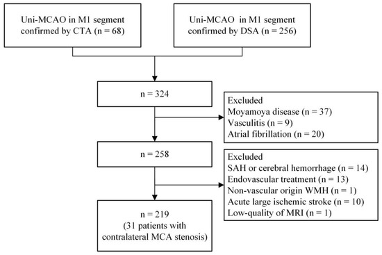 - Baradaran, H.; Mtui, E.; Richardson, J.E.; Delgado, D.; Gupta, A. Hemispheric Differences in Leukoaraiosis in Patients with Carotid Artery Stenosis: A Systematic Review. Clin. Neuroradiol. 2017, 27, 7–13. [Google Scholar] [CrossRef] [PubMed]