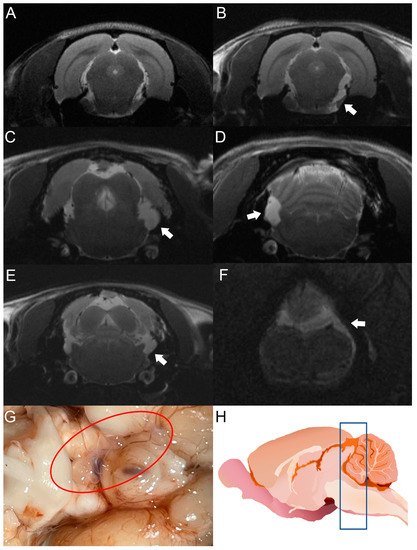 - Olopade, F.E.; Shokunbi, M.T.; Sirén, A.L. The relationship between ventricular dilatation, neuropathological and neurobehavioural changes in hydrocephalic rats. Fluids Barriers CNS 2012, 9, 19. [Google Scholar] [CrossRef]
