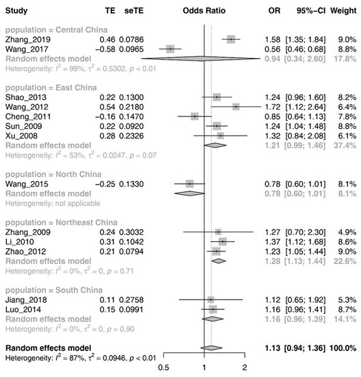 | Zhang 2009 [39] | Northeast China/Heilongjiang/Harbin | 122 | 44 | 0.067 | 7 | 46 | 69 | 4 | 10 | 30 |