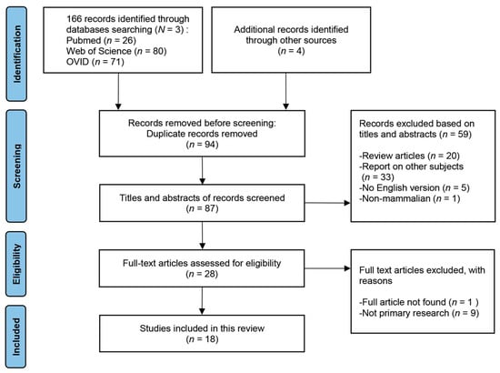 Twenty-eight publications were included for full-text eligibility assessment. After excluding publications for which the full text could not be found and research publications with non-primary research content, 18 publications were finally included in the discussion of this review. Data were extracted from each included publication to collate study characteristics and details. The PRISMA flowchart for this study is presented in Figure 1.