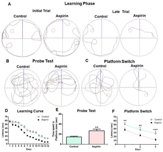 - Smith, J.W.; Al-Khamees, O.; Costall, B.; Naylor, R.J.; Smythe, J.W. Chronic aspirin ingestion improves spatial learning in adult and aged rats. Pharmacol. Biochem. Behav. 2002, 71, 233–238. [Google Scholar] [CrossRef]