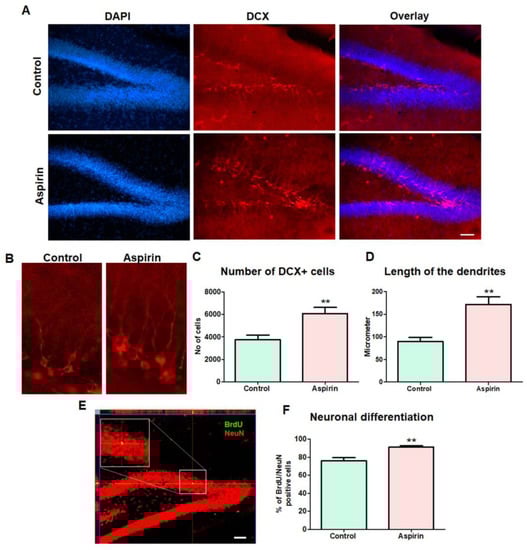 3.4. Aspirin Treatment Increased the Hippocampal Neurogenesis