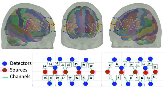 - Aasted, C.M.; Yücel, M.A.; Cooper, R.J.a.D.; Tsuzuki, D.; Becerra, L.; Petkov, M.P.; Borsook, C.; Dan, I.; Boas, D.A. Anatomical guidance for functional near-infrared spectroscopy: AtlasViewer tutorial. Neurophotonics 2015, 2, 020801. [Google Scholar] [CrossRef]